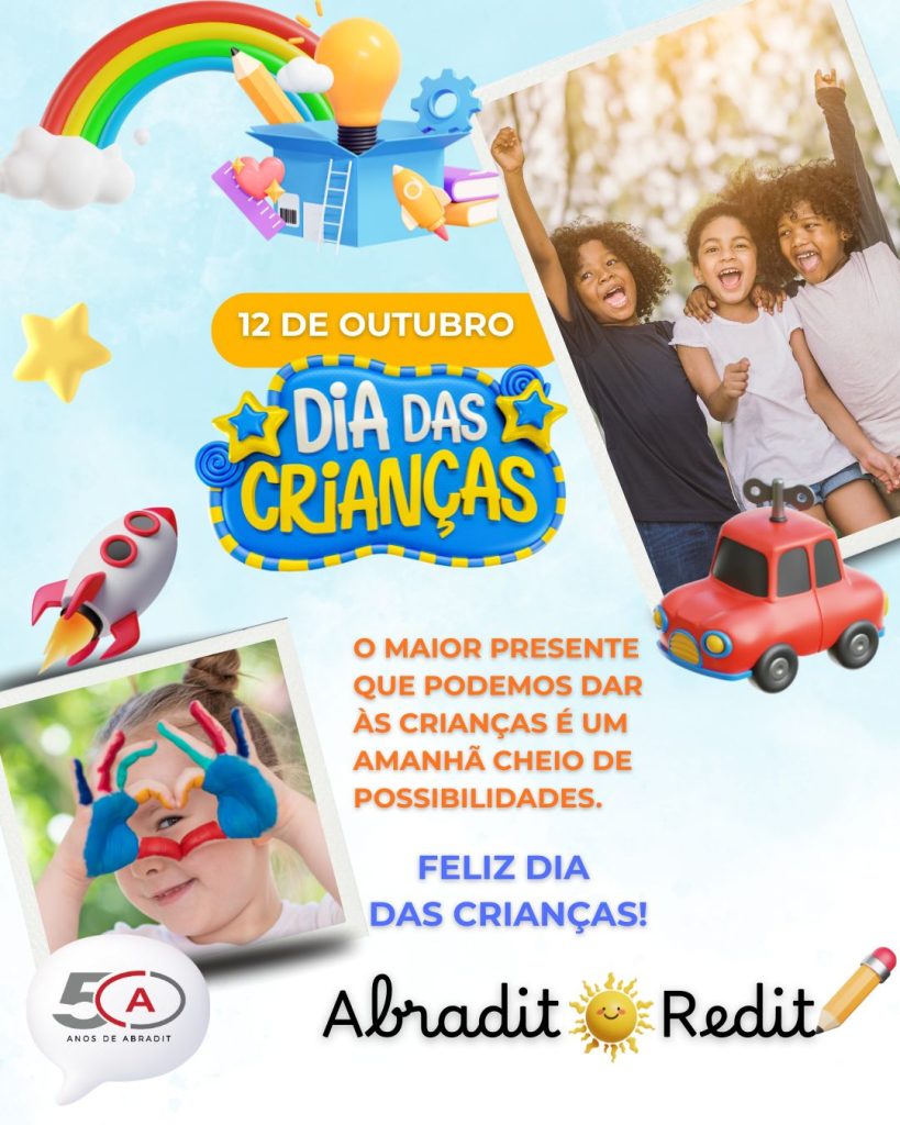 #DiaDasCrianças #ABRADIT50Anos #FuturoComAlegria #InfânciaFeliz #AmorEMovimento