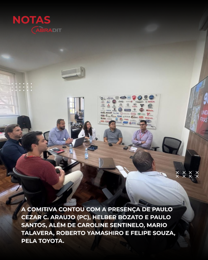 A comitiva contou com a presença de Paulo Cezar C. Araujo (PC), Diretor Executivo da ABRADIT; Helber Bozato, Coordenador de Vendas, Pós-Venda e Parcerias Estratégicas e Paulo Santos, Coordenador de TI & Meio Ambiente. Pela Toyota, participaram Caroline Sentinelo, Gerente de DRD e DEX; Mario Talavera, Coordenador de DRD; Roberto Yamashiro, Engenheiro de Processos e Felipe Souza, Analista Comercial.