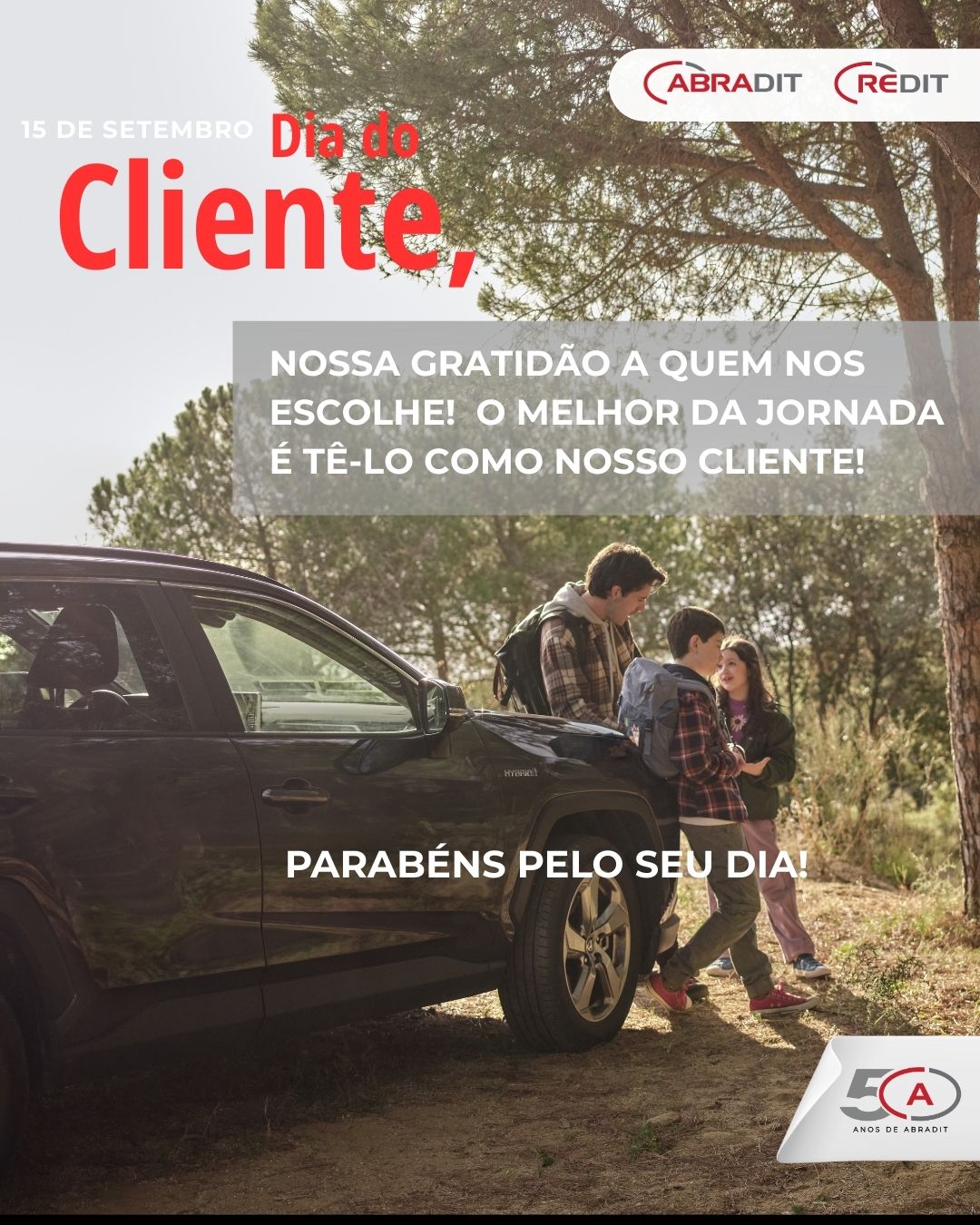 🌟 Nossa gratidão a quem nos escolhe! 🚘O melhor da jornada é tê-lo como nosso Cliente.🤝 Parabéns pelo seu dia! 🎊✨ #ABRADIT #ABRADIT50Anos #DiaDoCliente #RedeToyota #Relacionamento #Confiança #Parceria #Excelência